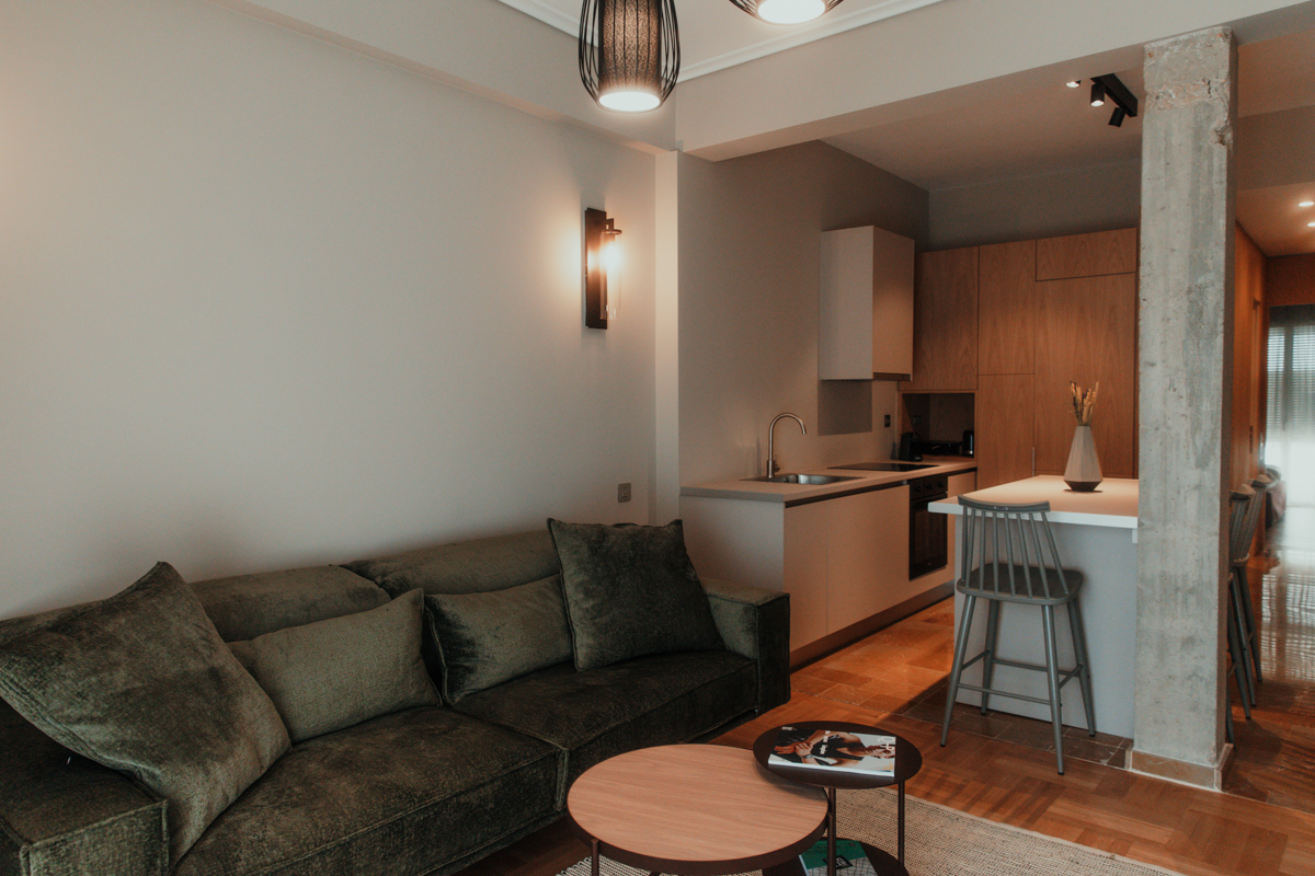 Situated in the peaceful district of Panormou, this 52m² suite is perfect for couples or solo travelers. The bright and airy space includes a thoughtfully designed bedroom, a cozy living area, and a kitchenette equipped with modern appliances. With its convenient location and serene ambiance, this suite offers a balanced blend of city excitement and restful retreat.